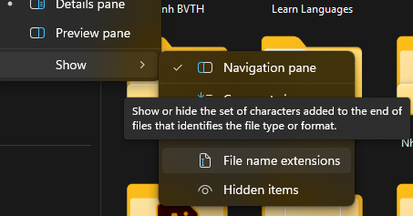 Mẹo: Kích hoạt tùy chọn “Show file extensions” trong File Explorer. Điều này giúp dễ dàng nhận dạng các tệp đáng ngờ và cung cấp khả năng bảo vệ đơn giản chống lại lừa đảo và phần mềm độc hại. Để thực hiện việc này, hãy nhấp vào View trên thanh menu và đánh dấu vào ô “File name extensions”.