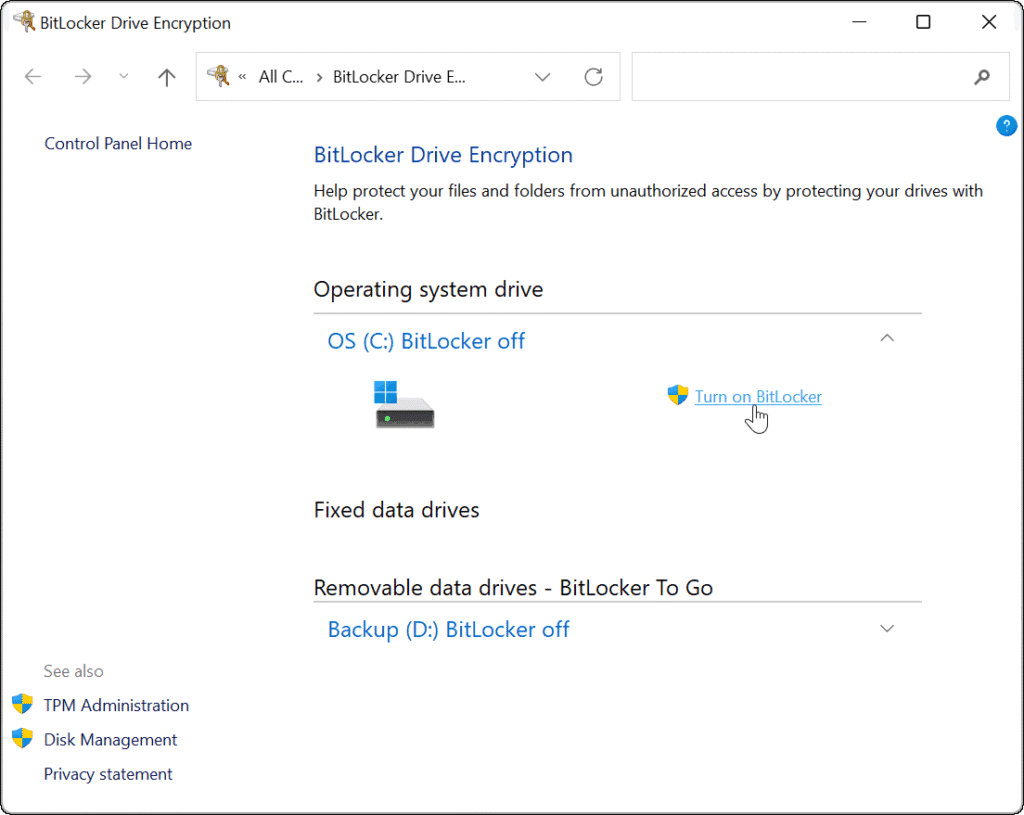 - Kích hoạt BitLocker hoặc mã hóa thiết bị: Tính năng này sẽ bảo vệ dữ liệu của bạn ngay cả trong trường hợp bị đánh cắp.
