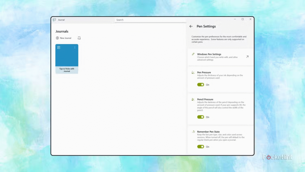 Journal là một ứng dụng miễn phí cho Windows 11 của Microsoft, hoạt động như một nhật ký kỹ thuật số chuyên dụng và môi trường ghi chép. Mặc dù có rất nhiều chương trình ghi chú, danh sách việc cần làm và phác thảo trên PC, Journal đặc biệt chú trọng vào việc nhập liệu bằng bút stylus, tận dụng tối đa công nghệ Windows Ink được tích hợp sẵn trong hệ điều hành máy tính để bàn hàng đầu của Microsoft.