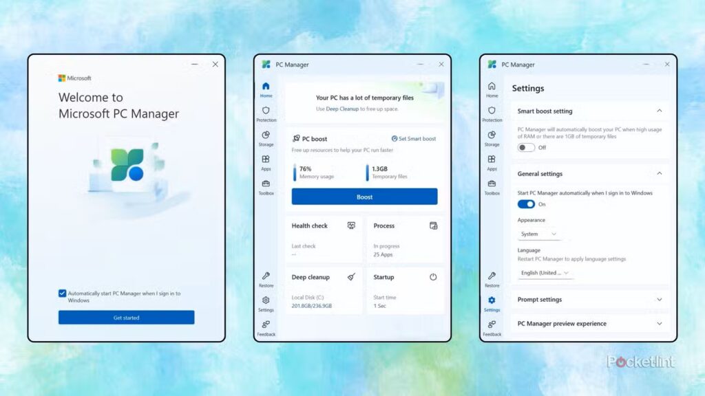 PC Manager là một ứng dụng miễn phí do Microsoft phát triển dành cho Windows 11, tích hợp một bộ sưu tập các công cụ và tiện ích hệ thống trong một giao diện khởi chạy đơn giản, gọn gàng. Tính năng PC Boost của ứng dụng được thiết kế để xóa các tệp tạm thời, một trình kiểm tra sức khỏe được tích hợp để chẩn đoán tình trạng chung của máy tính, và Smart Boost hoạt động ngầm để giải phóng RAM và giảm tải các tiến trình nền có tác động lớn.