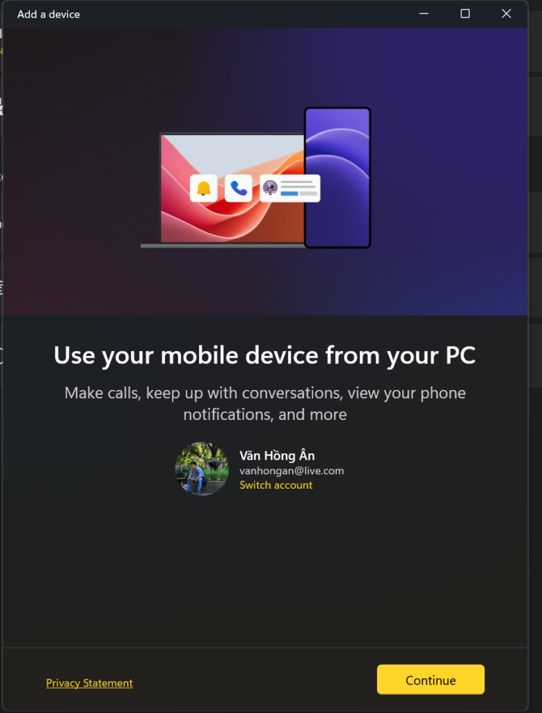 Thiết lập Kết nối Điện thoại rất dễ dàng và tất cả những gì tôi cần làm là tải xuống ứng dụng Link to Windows và quét mã QR để bắt đầu.