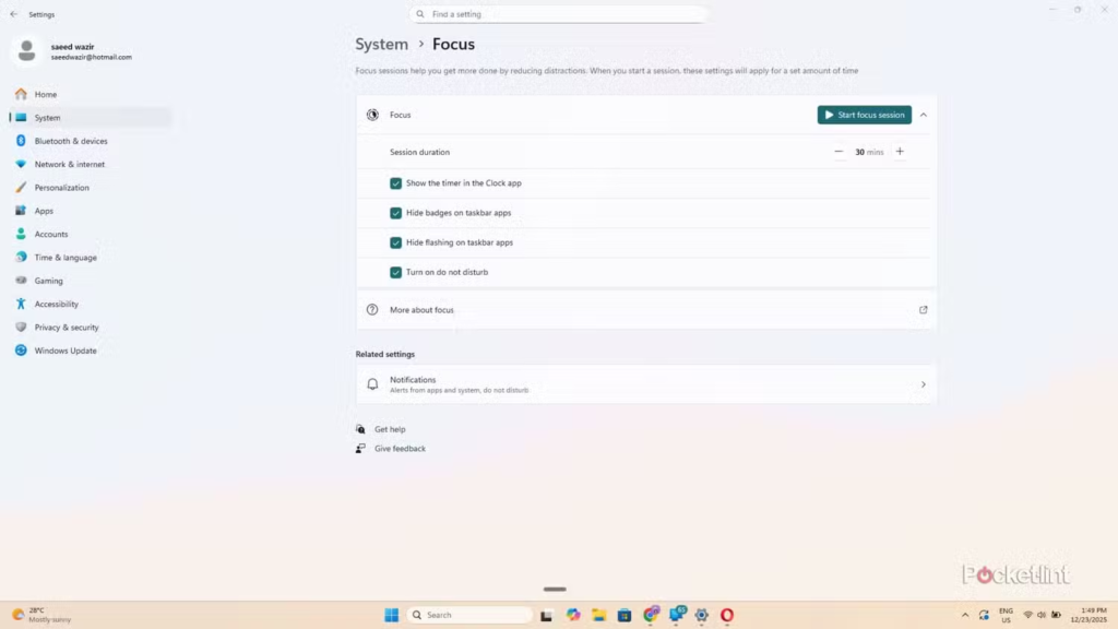 Tôi thấy việc tập trung khó khăn hơn bao giờ hết vì liên tục bị dội bom bởi các thông báo trên máy tính xách tay và điện thoại. Đó là lý do tại sao tôi sử dụng tính năng Focus Assist của Windows 11, nằm trong Settings -> System -> Focus, để giúp tôi luôn tập trung và hoàn thành đúng hạn.