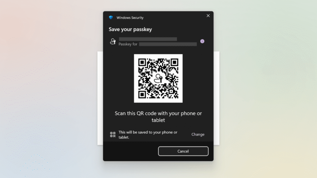 - Trong cửa sổ bật lên tiếp theo của Windows, hãy thay đổi nơi lưu trữ passkey. Theo mặc định, Windows sẽ lưu passkey vào máy tính của bạn—bạn không muốn điều đó. Đối với hầu hết mọi người, passkey tài khoản MS của bạn sẽ được lưu trong tài khoản Microsoft.