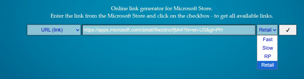 - Truy cập trang web: https://store.rg-adguard.net/