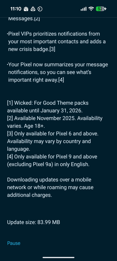 *[1] Pixel 7a, Pixel 8, Pixel 8 Pro, Pixel 8a, Pixel Fold, Pixel Tablet, Pixel 9, Pixel 9 Pro, Pixel 9 Pro XL, Pixel 9 Pro Fold, Pixel 9a, Pixel 10, Pixel 10 Pro, Pixel 10 Pro XL, Pixel 10 Pro Fold