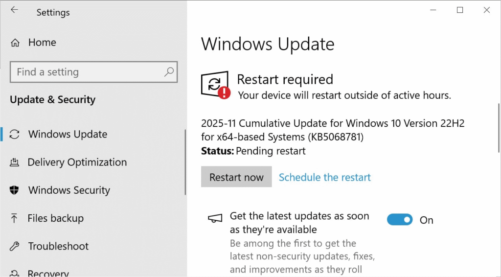 Bản cập nhật ESU đầu tiên cho máy tính Windows 10 là bản cập nhật KB5068781, chính thức được gọi là “2025-11 Cumulative Update for Windows 10 Version 22H2 (KB5068781)” và hiện đã có sẵn cho những người đã đăng ký ESU.