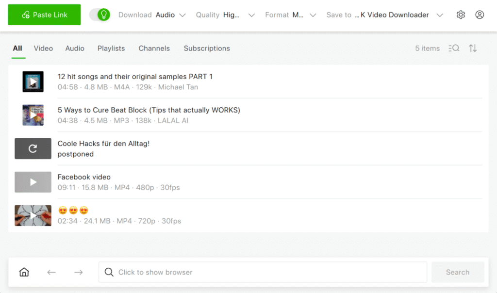 Bạn cũng có thể trích xuất chú thích và phụ đề từ video và lưu riêng. Ứng dụng cũng có trình duyệt tích hợp, cho phép bạn tìm kiếm video và âm thanh mà không cần phải thoát khỏi ứng dụng.