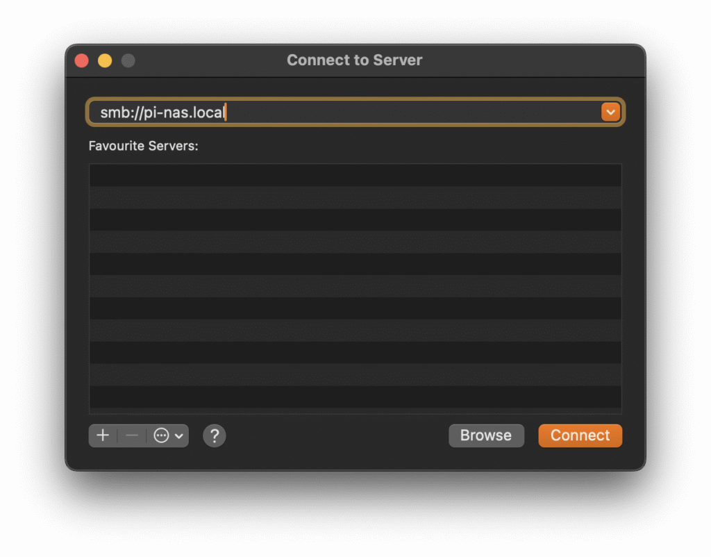 Bạn sẽ thấy tùy chọn Kết nối đến Máy chủ. Nhập pi-nas.local.