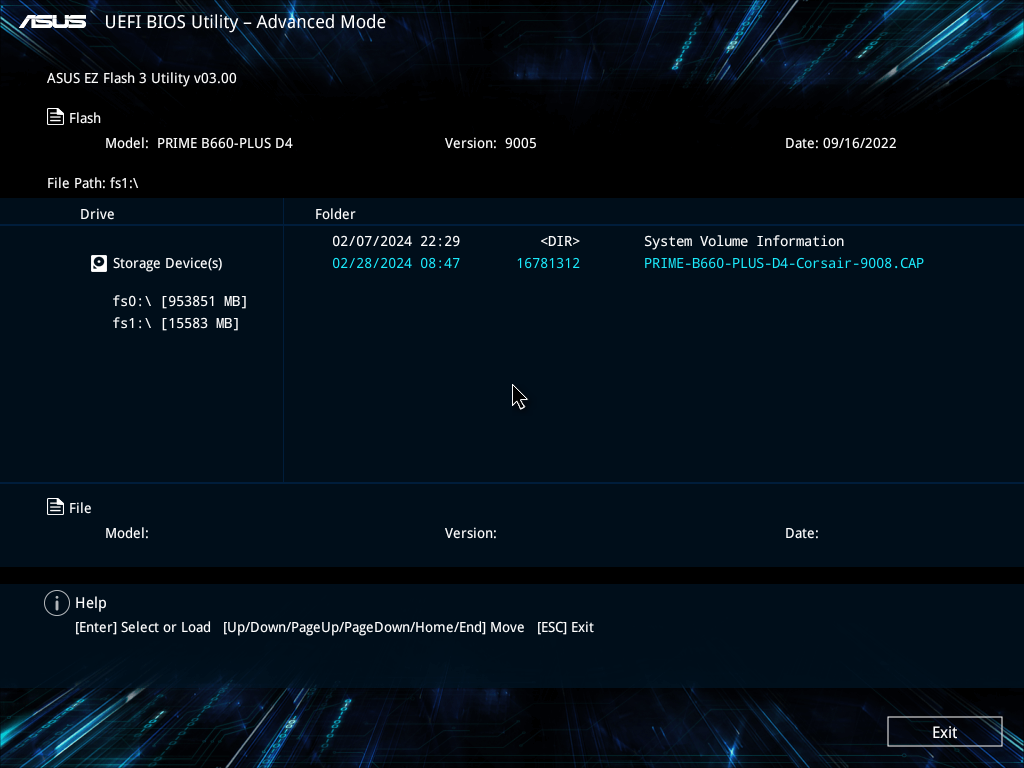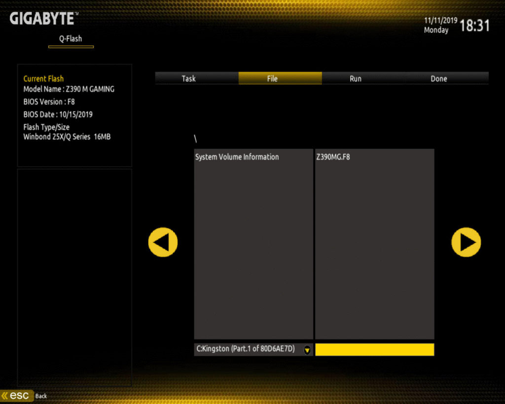 • Cập nhật: Chọn file BIOS trên USB và xác nhận để bắt đầu quá trình cập nhật.
