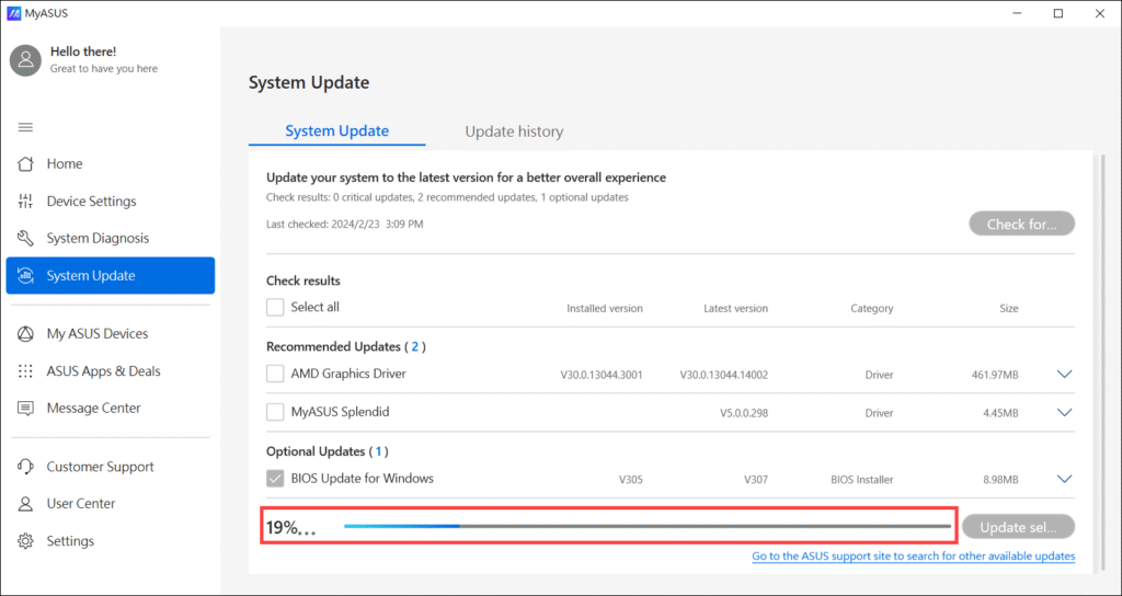 • Nếu có bản cập nhật BIOS, hãy chọn để tải về và cài đặt.