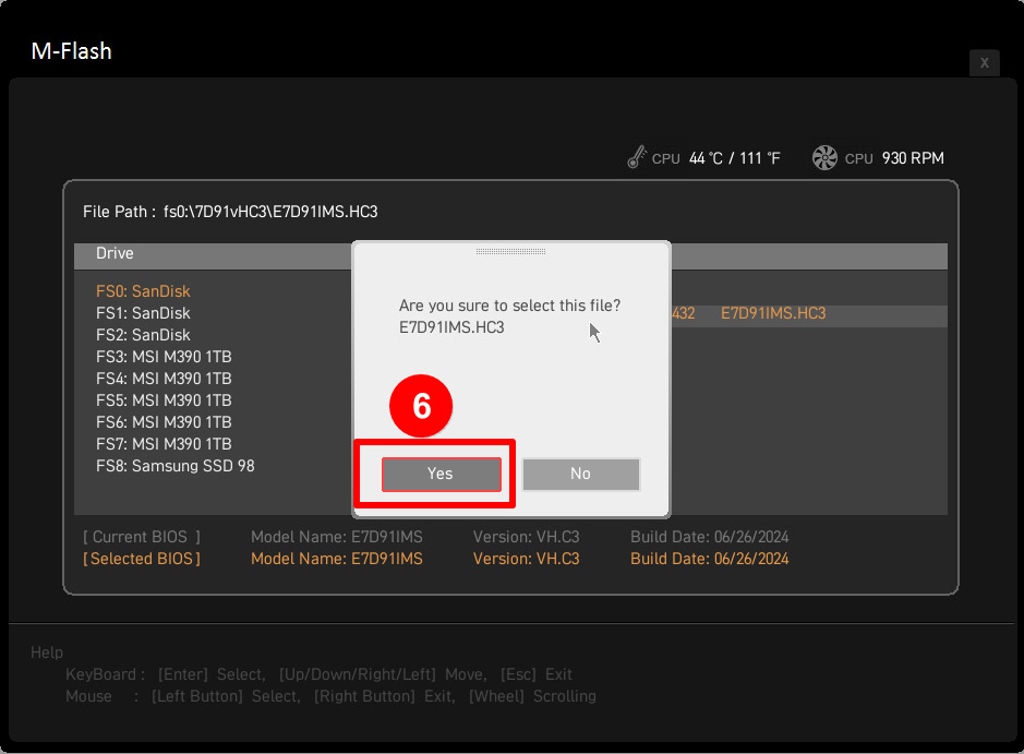 Chọn file BIOS vừa down, và nhấn Yes