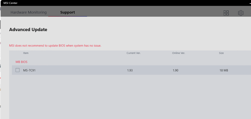 Cập nhật qua MSI Center (chỉ cho laptop)