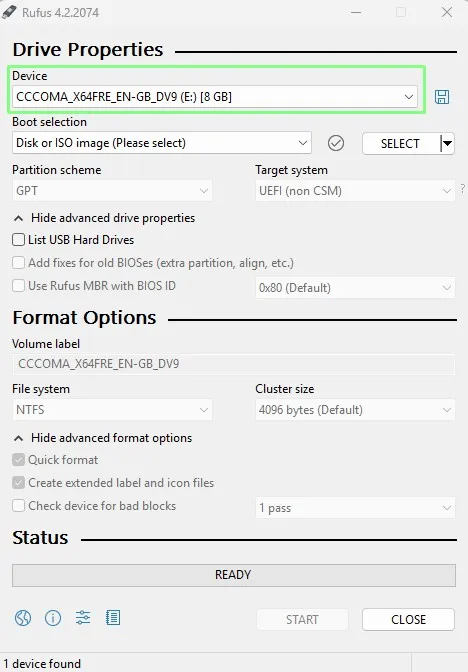 5. Cắm 1 ổ đĩa USB Flash vào và mở Rufus.