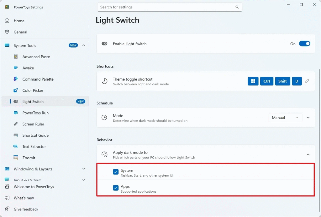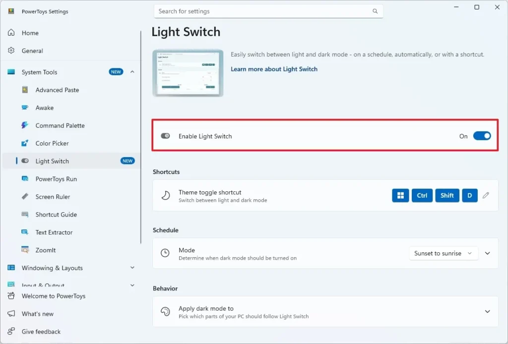 Nếu bạn là một trong số những người dùng đó, giờ đây bạn có thể thực hiện điều đó bằng tính năng “Light Switch” mới có trong ứng dụng PowerToys.