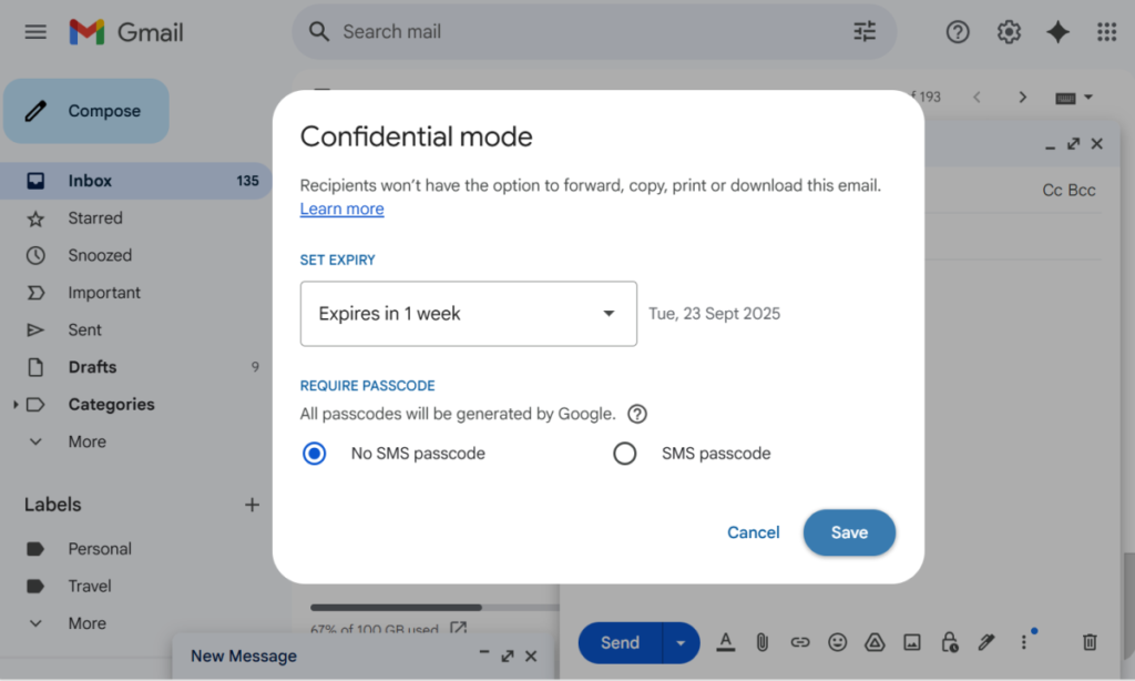 Đó là lý do tại sao hiện tại tôi gửi email Gmail ở Chế độ Bảo mật, cho phép bạn đặt ngày mà người nhận sẽ không thể truy cập vào email. Cách thực hiện như sau: