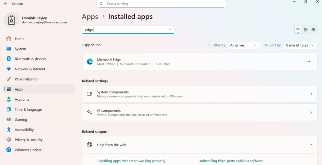 - Ở đây bạn cần tìm kiếm Edge, vì vậy hãy nhập “Edge”.