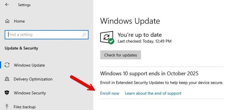 Tùy chọn đăng ký gói đăng ký ESU từ máy tính cá nhân chạy Windows 10 hiện đã có sẵn rộng rãi cho bất kỳ máy tính nào chạy Windows 10, phiên bản 22H2, các phiên bản Home, Professional, Pro Education và Workstation, đã cài đặt bản cập nhật mới nhất (tháng 8 năm 2025 trở đi). Phiên bản Enterprise và Education không đủ điều kiện. Tùy chọn này cũng sẽ không khả dụng trên bất kỳ máy tính nào đã tham gia miền Active Directory, đã tham gia Entra ID hoặc đã đăng ký với phần mềm Quản lý Thiết bị Di động như Windows Intune.