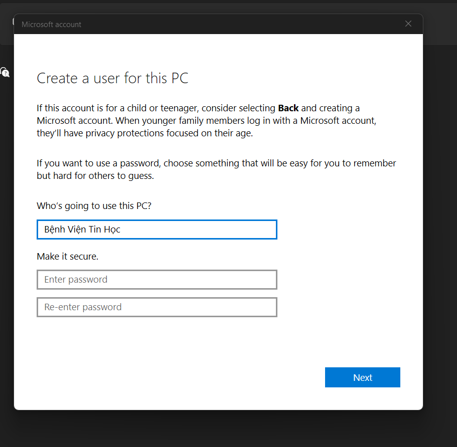 Tuy nhiên trong Windows 10, 11 thì nếu bạn muốn tạo thêm 1 tài khoản local thì hệ thống lại bắt đăng nhập tài khoản Microsoft cho tài khoản mới. Vậy thì làm thế nào để bạn tạo tài khoản Local?