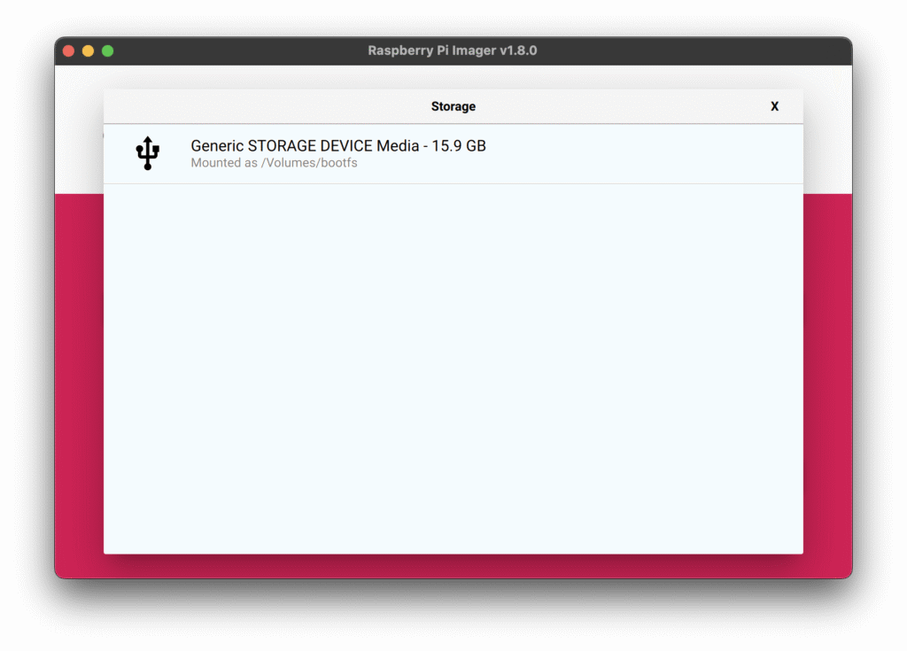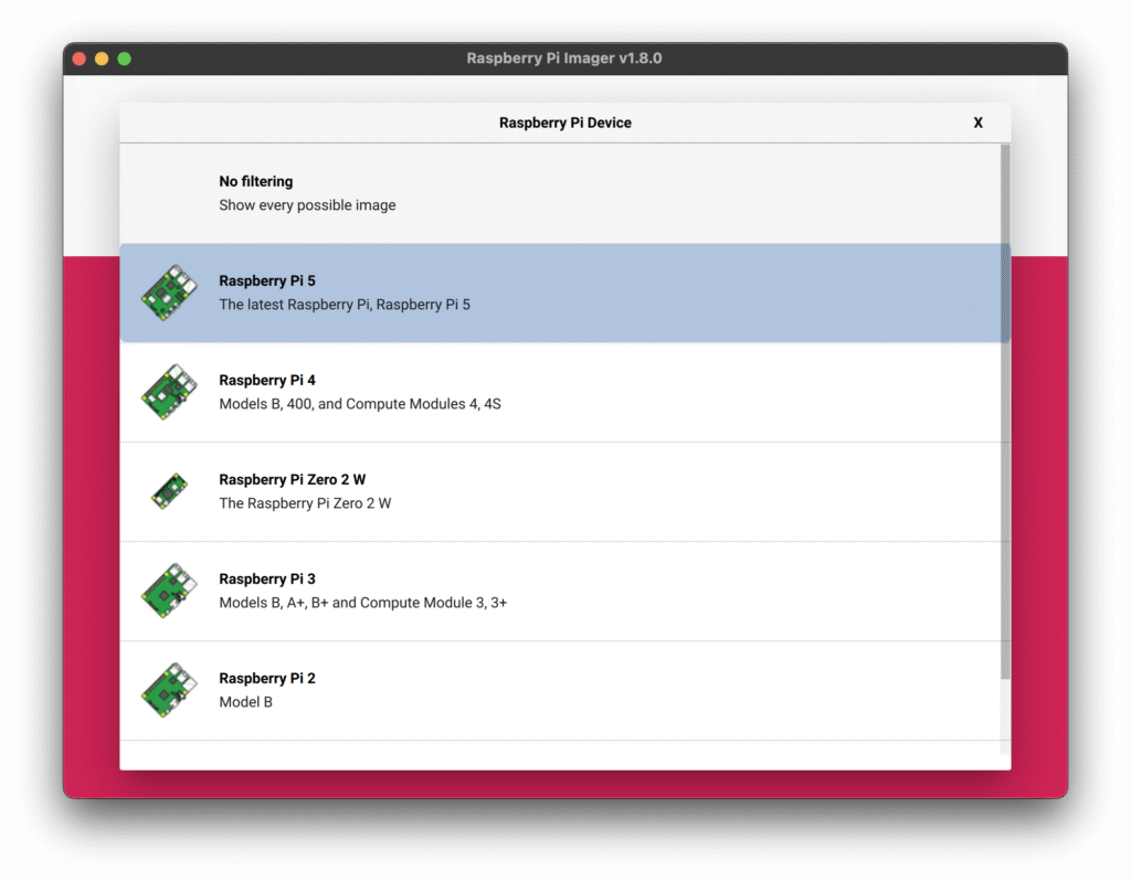 Nhấp vào Chọn thiết bị và chọn mẫu Raspberry Pi của bạn từ danh sách.