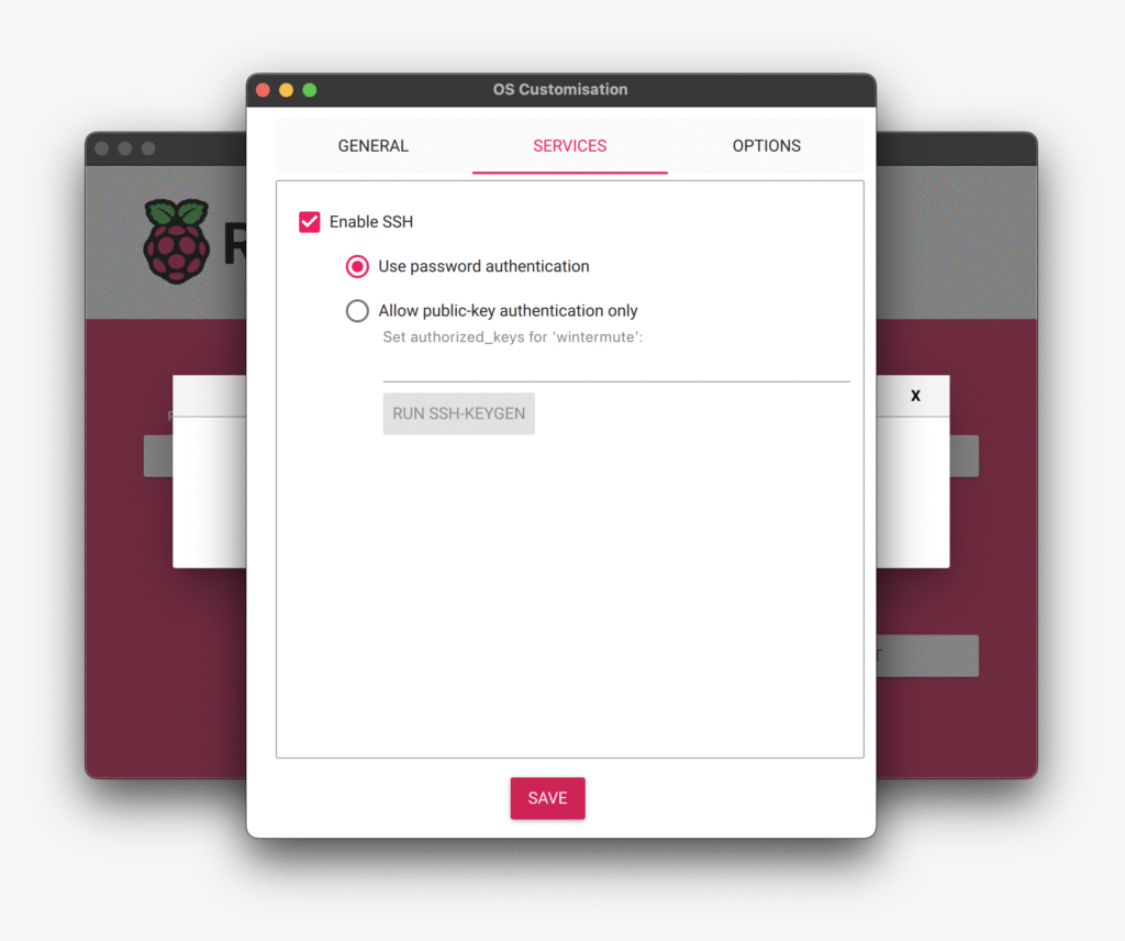 Chọn “Allow public-key authentication only” để cấu hình trước Raspberry Pi của bạn cho xác thực khóa công khai không cần mật khẩu SSH bằng khóa riêng từ máy tính bạn đang sử dụng. Nếu đã có khóa RSA trong cấu hình SSH, Imager sẽ sử dụng khóa công khai đó. Nếu chưa có, bạn có thể nhấp vào “Chạy SSH-keygen” để tạo cặp khóa công khai/riêng tư. Imager sẽ sử dụng khóa công khai mới được tạo.