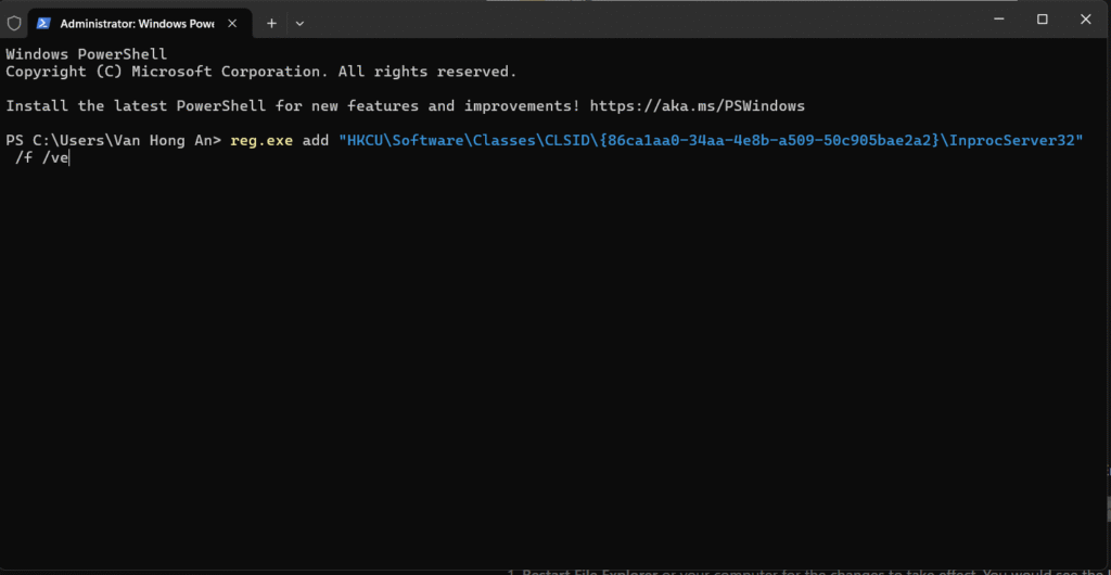 reg.exe delete "HKCU\Software\Classes\CLSID\{86ca1aa0-34aa-4e8b-a509-50c905bae2a2}" /f