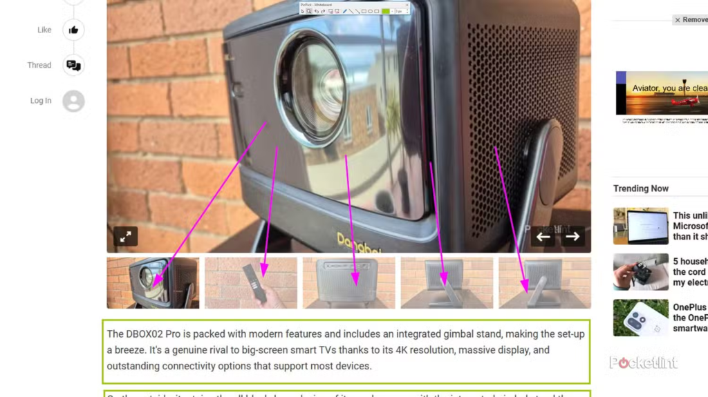 Công cụ Whiteboard của PicPick cung cấp nhiều màu sắc để làm nổi bật các yếu tố hoặc văn bản cụ thể trên màn hình, và tôi có thể dễ dàng điều chỉnh độ dày đường kẻ để làm cho mũi tên và hình dạng rộng hơn hoặc hẹp hơn. Có chức năng thu phóng để làm cho văn bản nhỏ dễ đọc hơn, và các nút hoàn tác và làm lại rất lý tưởng để sửa lỗi chỉ bằng một cú nhấp chuột.