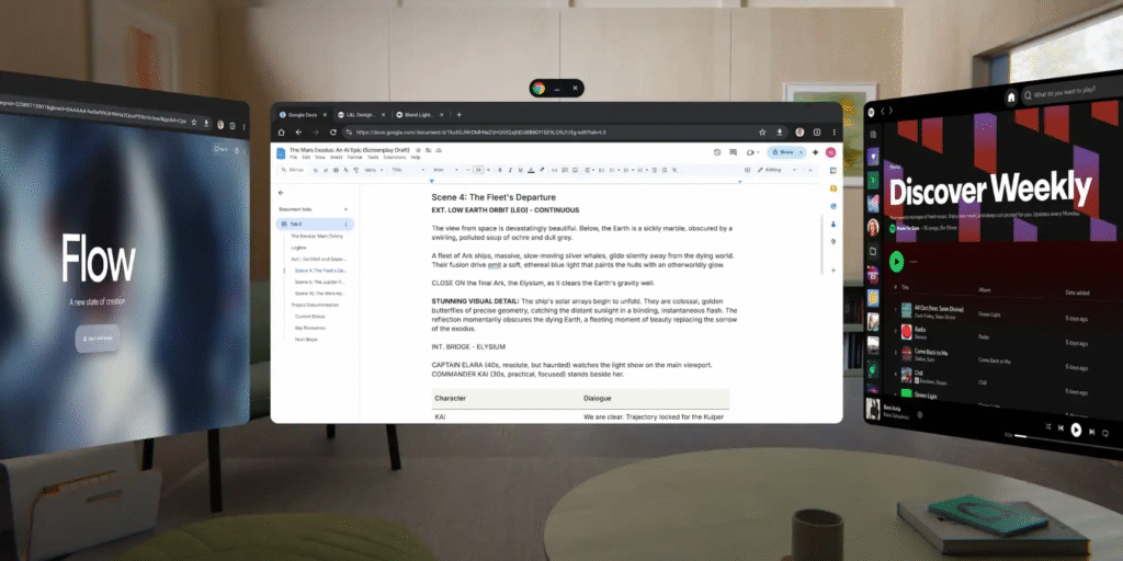 Về mặt năng suất, Google tập trung vào việc bạn có thể để nhiều ứng dụng trôi nổi trong không gian, bao gồm cả các tab Chrome. Google Meet cung cấp các ô video mà “bạn có thể mở rộng để đọc biểu cảm rõ ràng”. Chuột và bàn phím có thể được ghép nối với Galaxy XR, trong khi có khả năng “kết nối PC của bạn để có trải nghiệm máy tính để bàn hoàn chỉnh”.