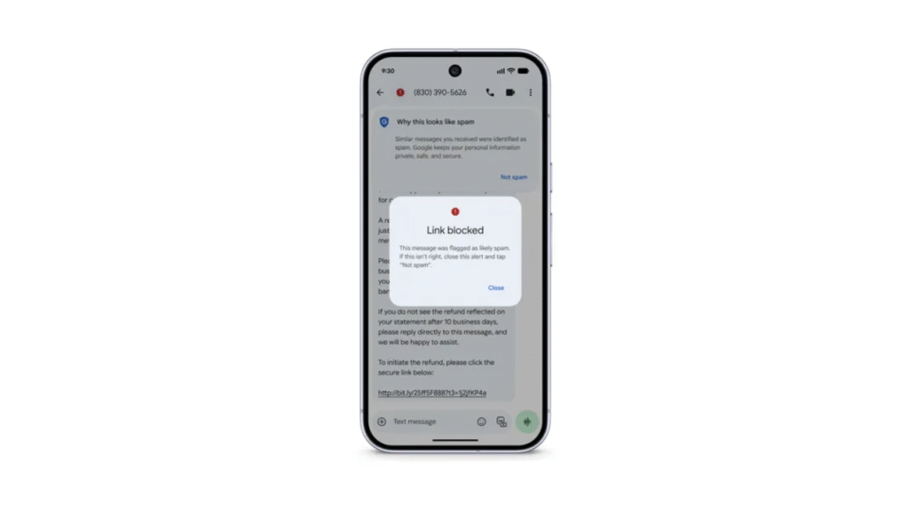 Google đã công bố các tính năng an toàn mới cho Google Messages nhằm giúp người dùng tránh các cuộc tấn công lừa đảo tiềm ẩn và phát hiện chúng trước khi quá muộn. Đầu tiên, Google Messages hiện đã ngăn người dùng truy cập vào các liên kết bên trong tin nhắn bị nghi ngờ là lừa đảo.