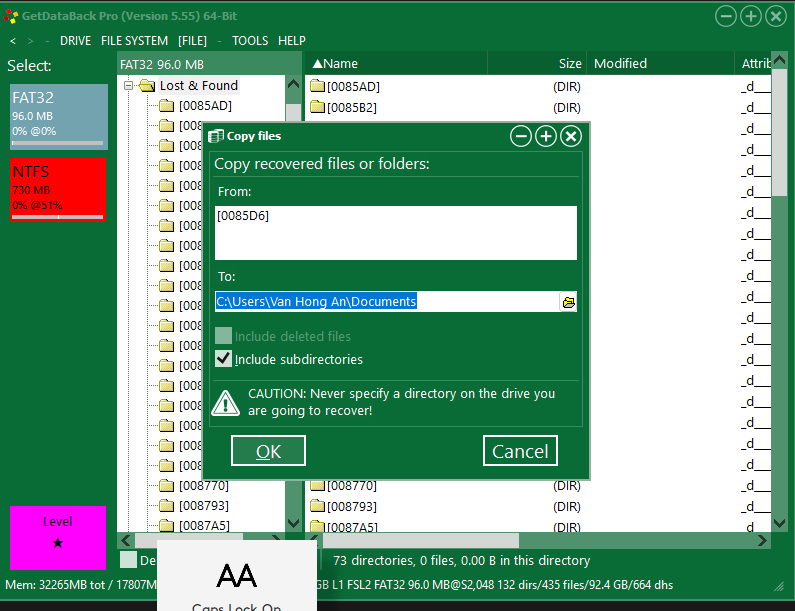 Bạn cắm USB để chứa file cần phục hồi vào và lưu tại USB đó. Và kiểm tra thành quả. Thế là xong