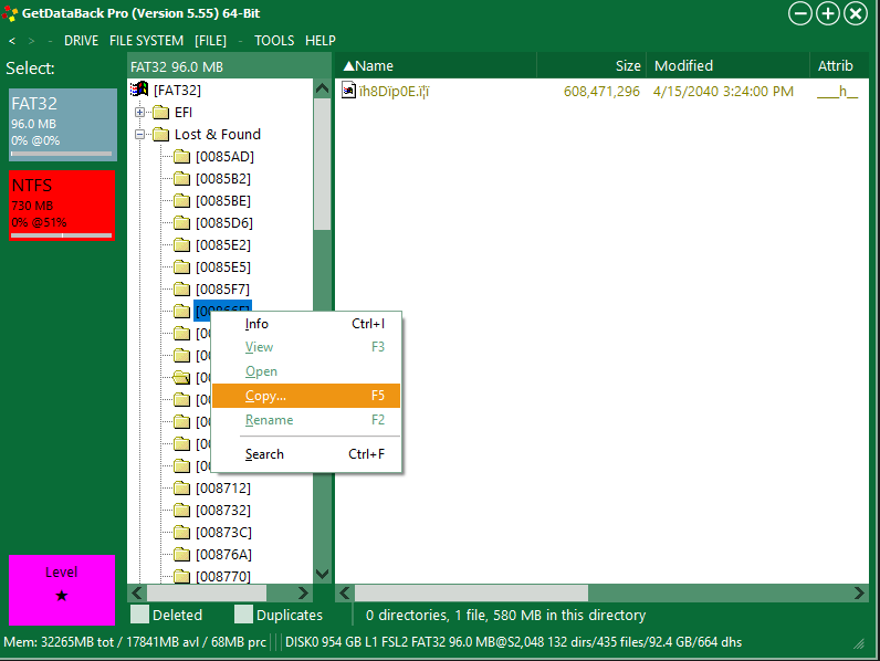 Nhấp phải vào files/folder cần phục hồi , chọn Copy