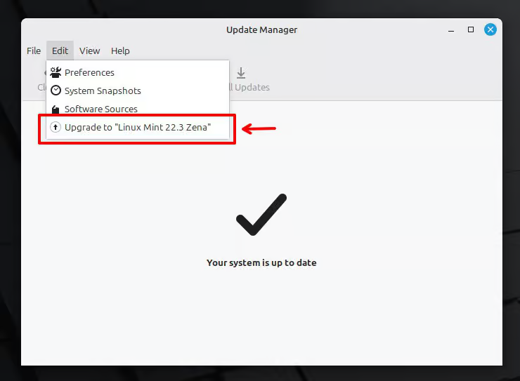 Người dùng Mint 22.2 “Zara” hiện tại có thể nâng cấp lên phiên bản mới bằng cách cập nhật ứng dụng Trình quản lý cập nhật trước, sau đó chọn “Nâng cấp lên Linux Mint 22.3 Zena” từ menu Chỉnh sửa và làm theo các bước hướng dẫn. Trong các thử nghiệm của tôi, quá trình cập nhật diễn ra suôn sẻ mà không gặp bất kỳ sự cố nào.