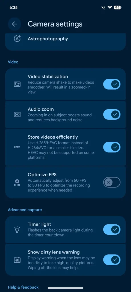 *Tối ưu hóa FPS — “Tự động điều chỉnh từ 60 FPS xuống 30 FPS để tối ưu hóa trải nghiệm quay phim khi cần thiết” — là tính năng mới trên Pixel 8 Pro và Pixel 9 sau khi ra mắt trên Pixel 10.