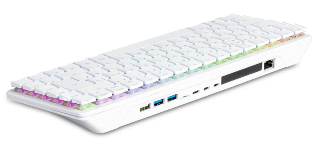 Phiên bản mới nhất của thiết kế 75% đi kèm với switch Gateron blue clicky mỏng nhẹ và các keycap có thể tháo rời, bao gồm cả dụng cụ tháo keycap trong hộp. Để thêm phần nổi bật cho game thủ, bên dưới chúng còn có đèn RGB. Và đúng vậy, bàn phím có nhiều bố cục và ngôn ngữ khác nhau, bao gồm cả chuẩn ANSI của Hoa Kỳ cho các mẫu được bán ở Bắc Mỹ. Tiếc là nó không có đế cắm hot-swap… nhưng nếu bạn là một fan hâm mộ Raspberry Pi, bạn không ngại dùng mỏ hàn đâu, phải không?