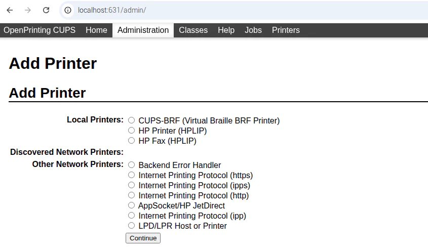 5. Truy cập vào CUPS thông qua giao diện web tại: http://<Raspberry_Pi_IP>:631