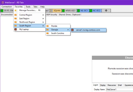RD Tabs là ứng dụng Remote Desktop hỗ trợ tab tiên tiến và trình quản lý kết nối Windows đầu tiên. Nó bắt đầu từ năm 2006 với một ý tưởng đơn giản: mang ý tưởng mới mẻ về trình duyệt web có tab vào Remote Desktop. Từ đó, một cách để ghi nhớ các thuộc tính phiên đã lưu tốt hơn so với việc sử dụng nhiều tệp .rdp (mục yêu thích) đã được thêm vào, bao gồm khả năng chỉnh sửa hàng loạt nhiều mục yêu thích cùng một lúc, giúp việc quản lý mật khẩu đã lưu trở nên đơn giản. Nhưng tại sao lại dừng lại ở đó? Các tính năng cho phép chia màn hình, nhiều cửa sổ, kích thước màn hình được điều chỉnh đã được thêm vào. Hiện nay, nhiều tính năng nâng cao hơn đang được bổ sung nhanh chóng. Từ công cụ kịch bản PowerShell tích hợp, đến các tab màu để sắp xếp, RD Tabs giúp cuộc sống của Quản trị viên Hệ thống dễ dàng hơn rất nhiều.