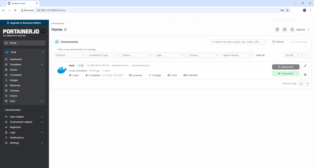Quá trình này sẽ hoàn tất trong vài giây. Portainer là một giao diện người dùng quản lý nhẹ cho phép bạn dễ dàng quản lý máy chủ Docker hoặc cụm Swarm của mình. Portainer được thiết kế để triển khai đơn giản như cách sử dụng. Nó bao gồm một container duy nhất có thể chạy trên bất kỳ công cụ Docker nào (Docker cho Linux, Docker cho Synology DSM và Docker cho Windows đều được hỗ trợ). Portainer cho phép bạn quản lý các Docker stacks, container, hình ảnh, ổ đĩa, mạng và nhiều hơn nữa! Nó tương thích với công cụ Docker độc lập và với Docker Swarm