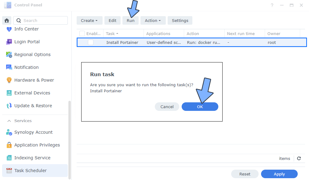 Synology: Cài đặt Portainer trong 30 giây bằng Task Scheduler & Docker
