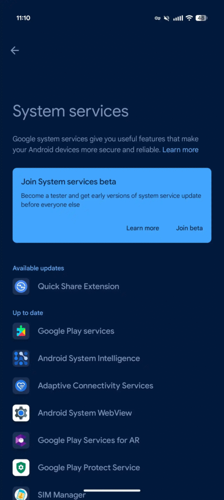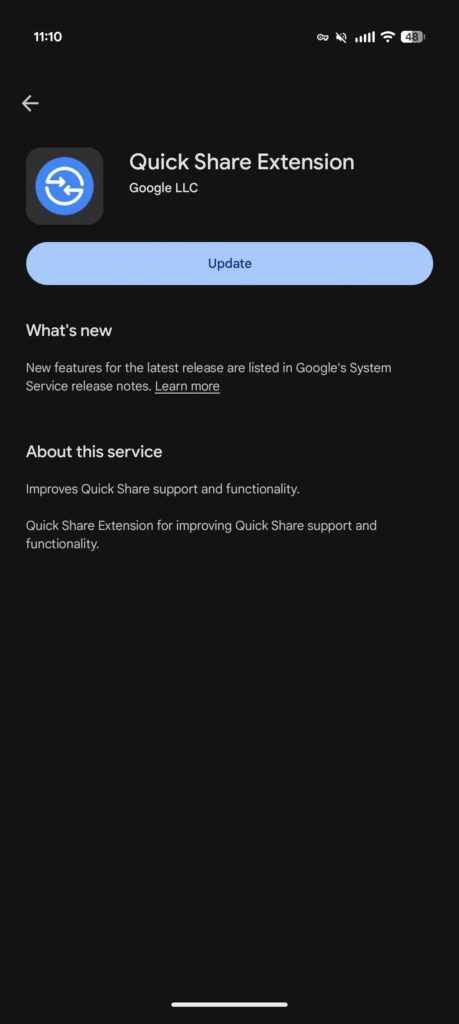 Để bật, chủ sở hữu Pixel 10 phải vào: Cài đặt > chạm vào tên của họ ở trên cùng để vào mục Google services > All services > Privacy & security > System services. Update “Quick Share Extension” và khởi động lại điện thoại.