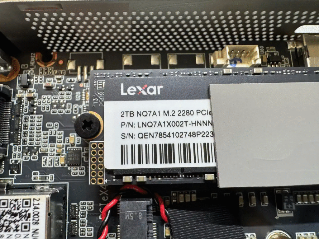 Hệ thống còn dư một khe cắm M.2 ngắn (M.2-2230) để lắp thêm một ổ SSD. Việc lựa chọn ổ đĩa tương thích có phần hạn chế. Để nâng cấp, chúng tôi chọn ổ SSD Crucial P310 2TB. Một lựa chọn thay thế khác là Corsair MP600 Mini, có hai phiên bản 1TB và 2TB.