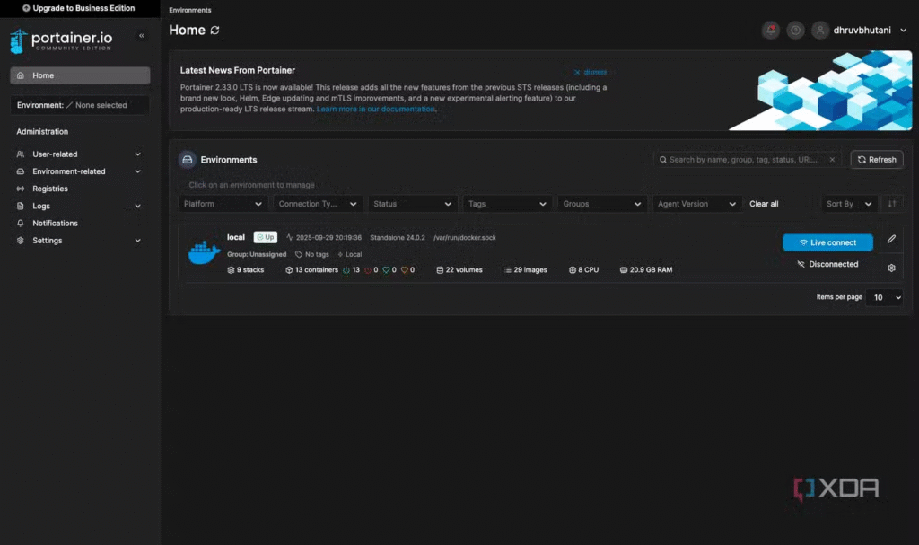 Quá trình cài đặt Portainer diễn ra vô cùng liền mạch. Trên Synology NAS của tôi, tôi đã thiết lập Docker sẵn, nên chỉ cần chạy một container duy nhất trên NAS. Tạo ổ đĩa, ánh xạ các cổng cần thiết và Portainer đã sẵn sàng hoạt động. Làm theo các bước cơ bản để tạo tài khoản quản trị, và Portainer sẽ tự động kết nối với môi trường Docker đang chạy trên NAS của bạn. Đơn giản vậy thôi. Nhưng một khi Portainer đã chạy, đó mới là lúc điều kỳ diệu thực sự xuất hiện.