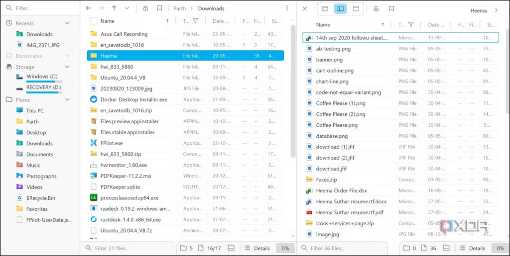 File Pilot đã thay đổi quan niệm của tôi về đa nhiệm bằng cách giới thiệu chế độ chia màn hình vô hạn. Thay vì phải nhấp chuột qua lại giữa hai tab để di chuyển tệp, tôi chỉ cần chia màn hình. Rồi tôi lại chia thêm lần nữa. Nếu tôi đang làm việc trên một dự án phức tạp, tôi có thể mở bốn thư mục khác nhau được sắp xếp hoàn hảo – tài sản, mã nguồn, xuất khẩu và bảng nháp – tất cả đều hiển thị cùng lúc trong một cửa sổ duy nhất.