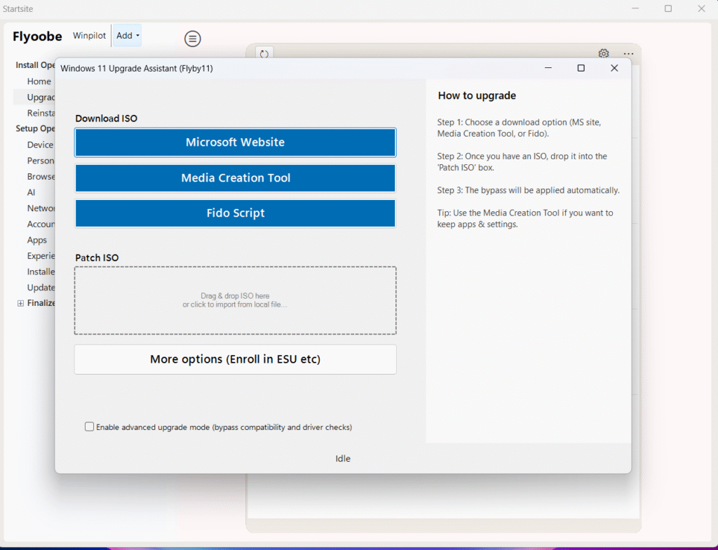 Trước đây, quá trình nâng cấp (Flyby11) chỉ hoạt động trên các CPU đã vượt qua bài kiểm tra khả năng tương thích. Giờ đây, bạn có thể xóa CpuCheckNative.dll khỏi thư mục ứng dụng để bỏ qua bước kiểm tra CPU – hãy tự chịu rủi ro khi thực hiện. Kiểm tra CPU luôn được FlyOOBE thực hiện trong quá trình nâng cấp, nhưng có những trường hợp bỏ qua cũng được hỗ trợ.