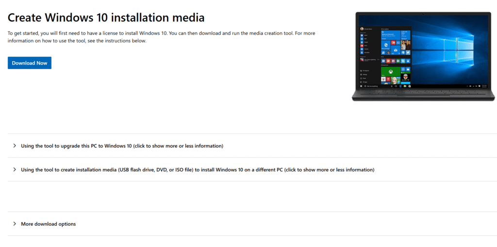 - Mở Microsoft website để tải về Media Creation Tool cho Windows 10 và nhấn vào nút “Download Now”