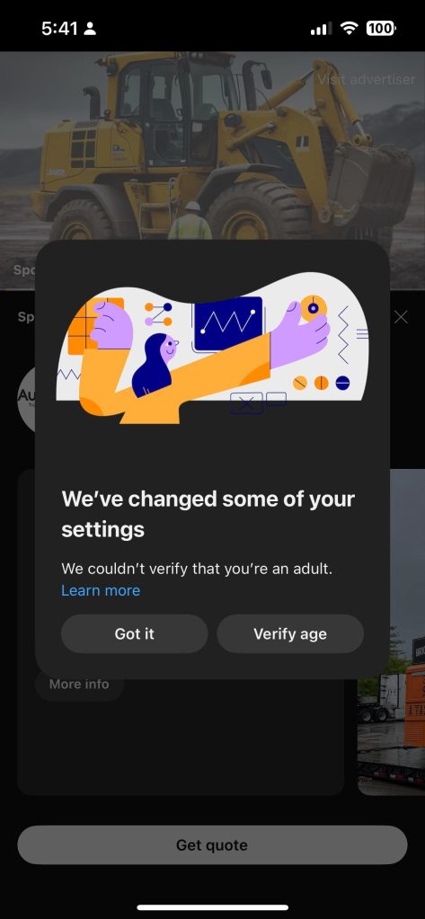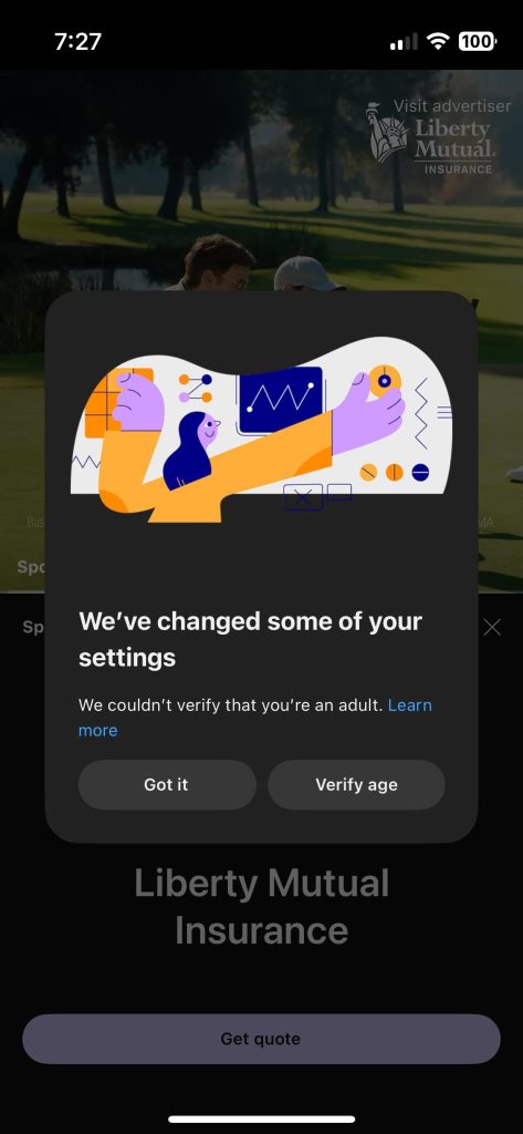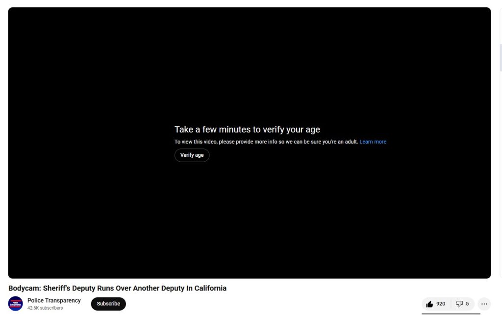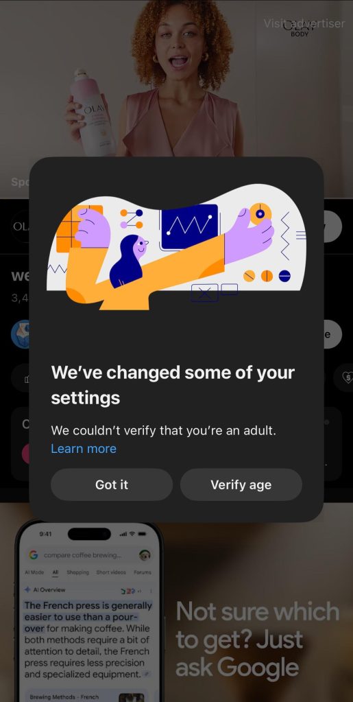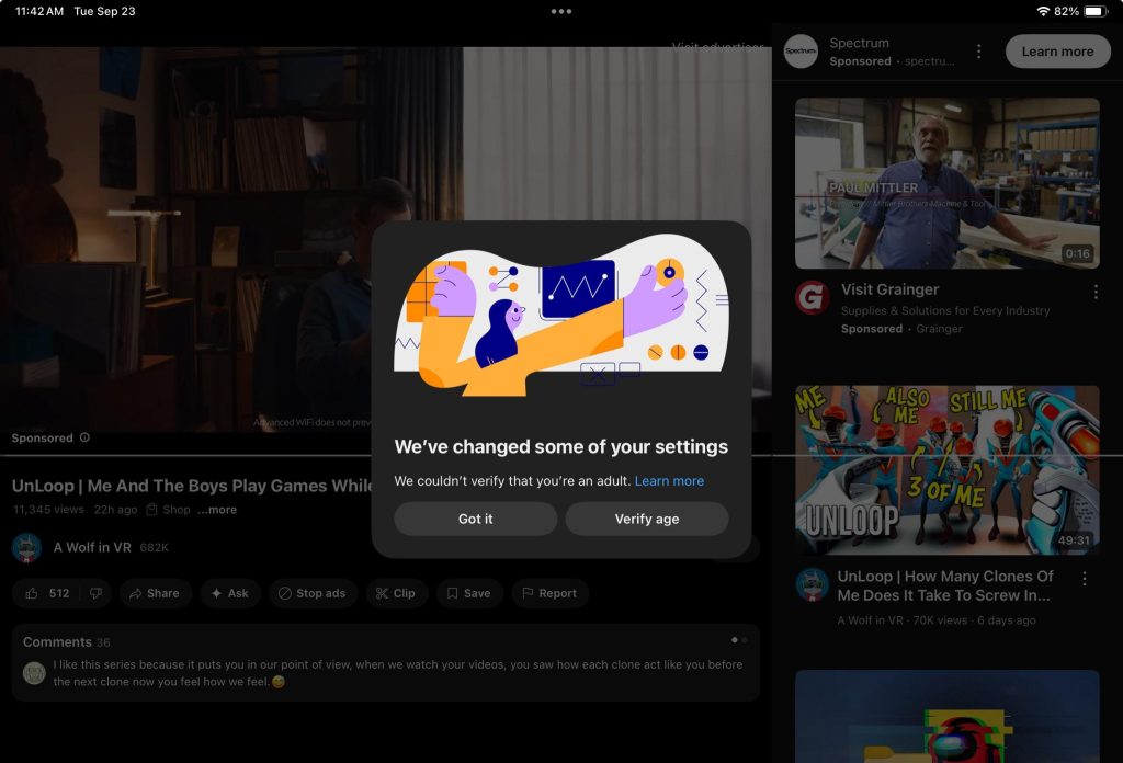 Người dùng bị hạn chế tài khoản sẽ thấy một cửa sổ bật lên trong ứng dụng di động/máy tính bảng hoặc trên trình phát video trên web thông báo rằng cài đặt tài khoản của họ đã thay đổi và họ cần xác minh độ tuổi.